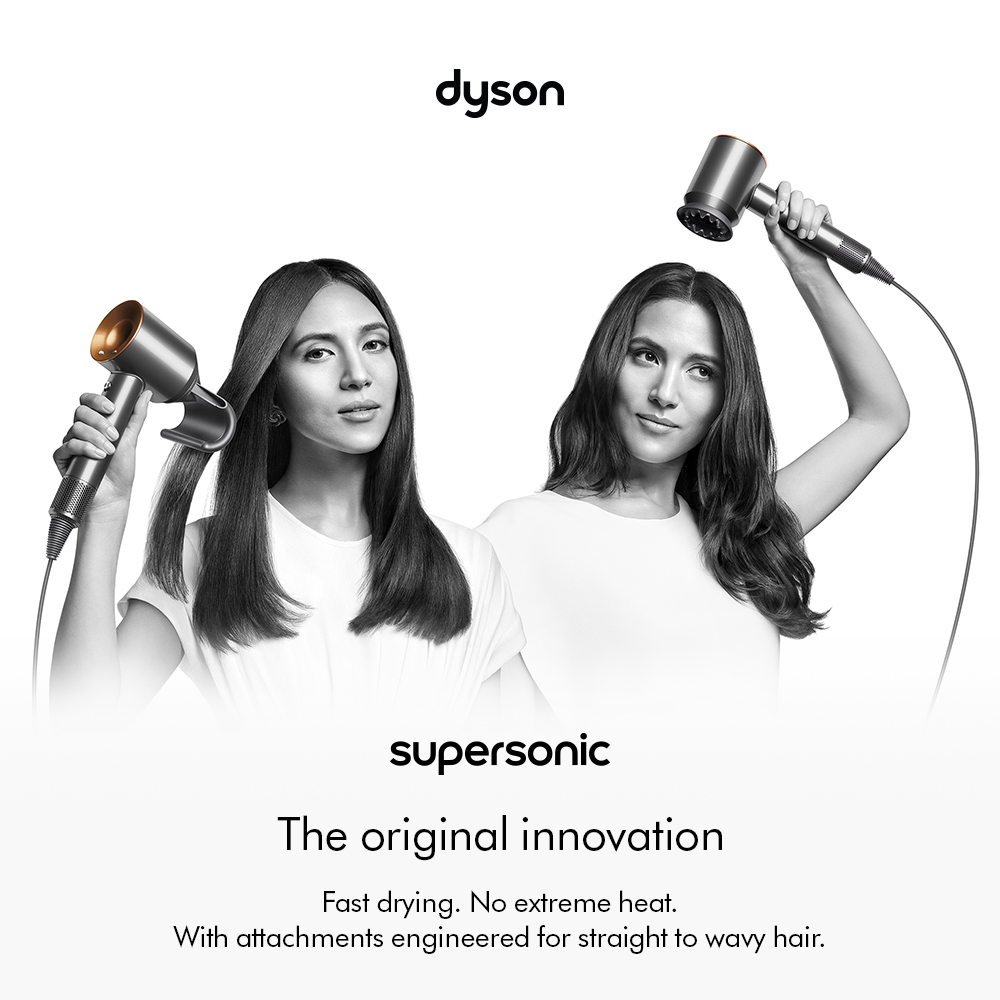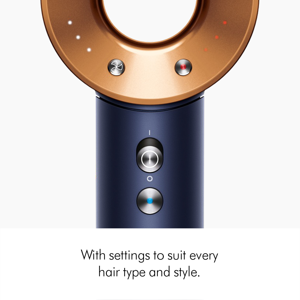 The Dyson Supersonic™ hair dryer measures air temperature over 40 times a second and regulates the heat. This helps prevent extreme heat damage, to protect your hair’s shine.