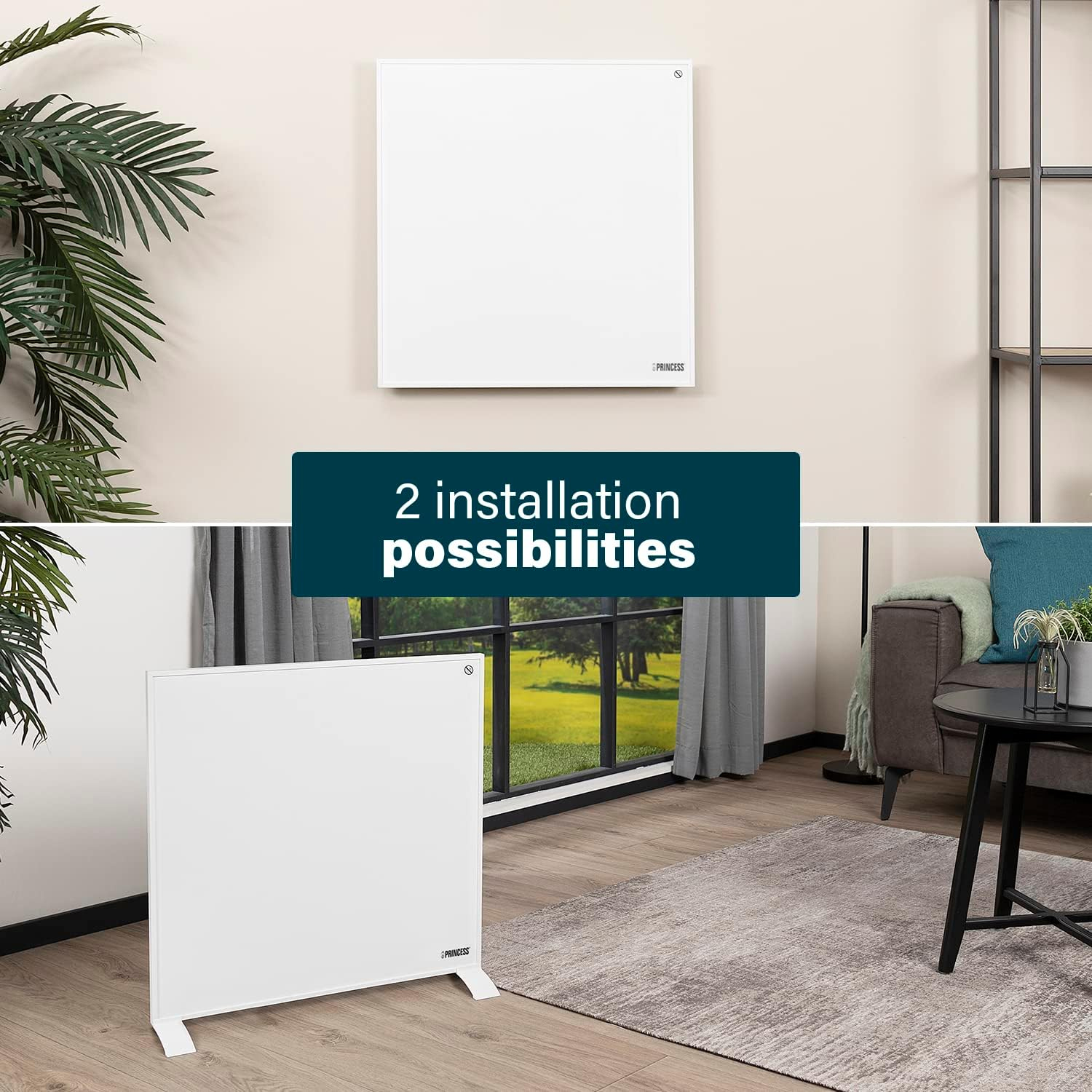 Stylish wall mountable 350W infrared panel heater for sustainable, quick and efficient heating. This Princess panel heater uses infrared technology to directly distribute heat evenly on near by people and objects.