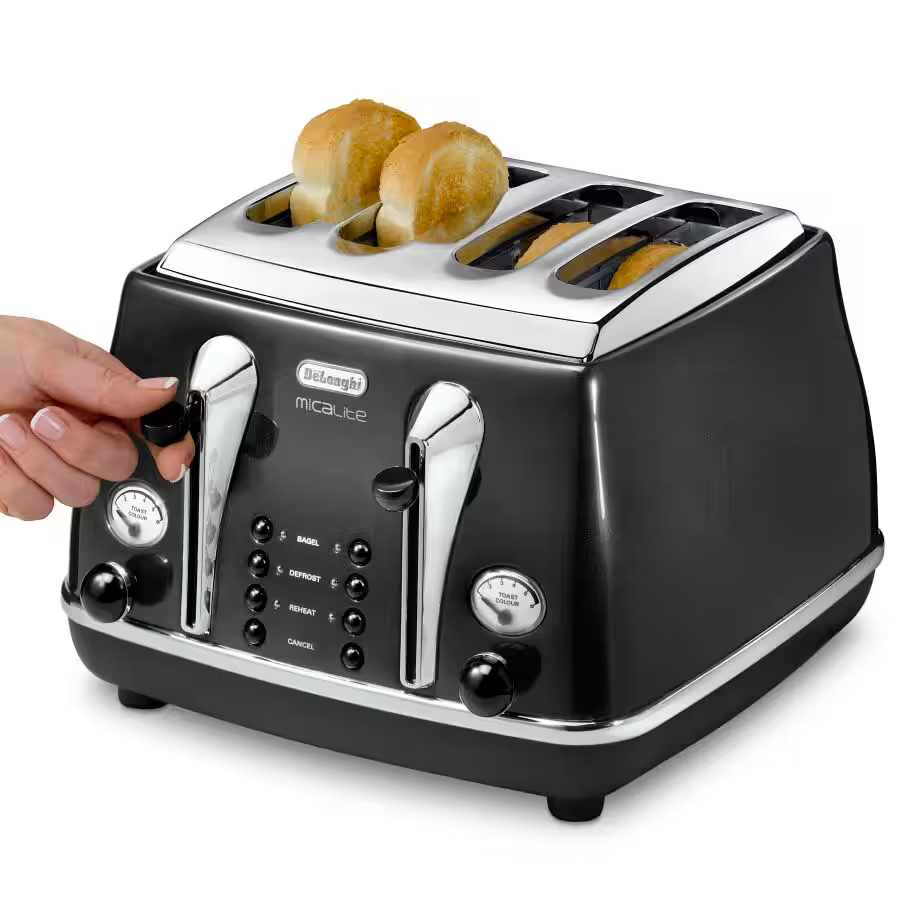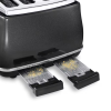 4 slot design in sets of two so you can independently make toasts of varying types. You can adjust with features such as rapid toasting, reheating old slices, defrosting frozen slices, bagel heating and cancelling function just in case something goes wrong. The extra lift position makes it easy to retrieve smaller slices of toast without burning your fingers. The browning control allows you to choose just the right amount of crispiness - whether you prefer moderately crisp or extremely crunchy slices. The extra deep crumbs tray is removable so you will have a tidier countertop at the end.