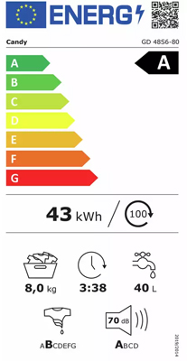 Candy GD 48S6-80 8KG 1400 Spin Washing Machine - White