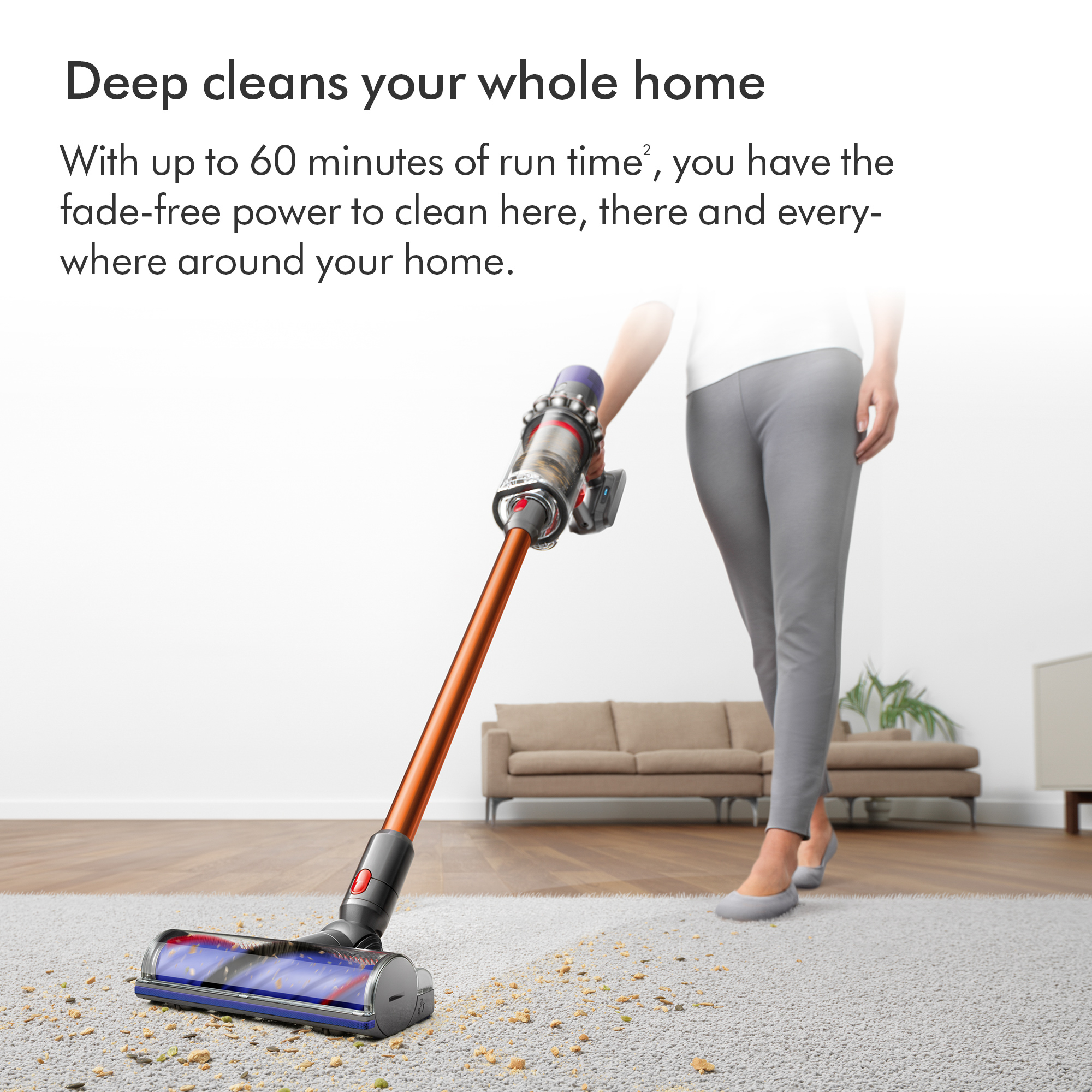 For versatile deep cleaning all around your home with up to 60 minutes of run time^1.