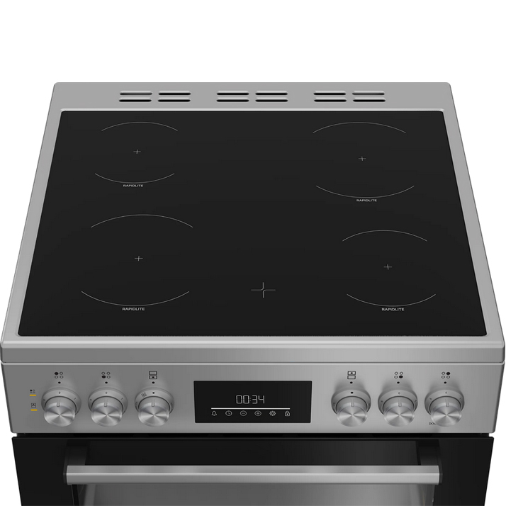 Designed with quality and reliability in mind, this electric cooker features a fan main oven and conventional top oven with grill, offering consistent and precise cooking results with AeroPerfect technology. Thanks to its 4 Rapidlite zone hobs, your food will quickly reach its highest temperature, saving you time and money. For added ease, this model features our SimplySteam™ technology, which softens burnt-on food and grease to make cleaning easier. To demonstrate our confidence in the quality of our appliances, this model comes with a 10 Year Beko Parts Guarantee (subject to registration).
