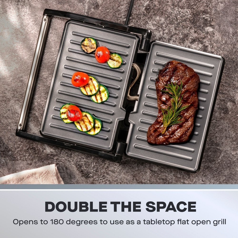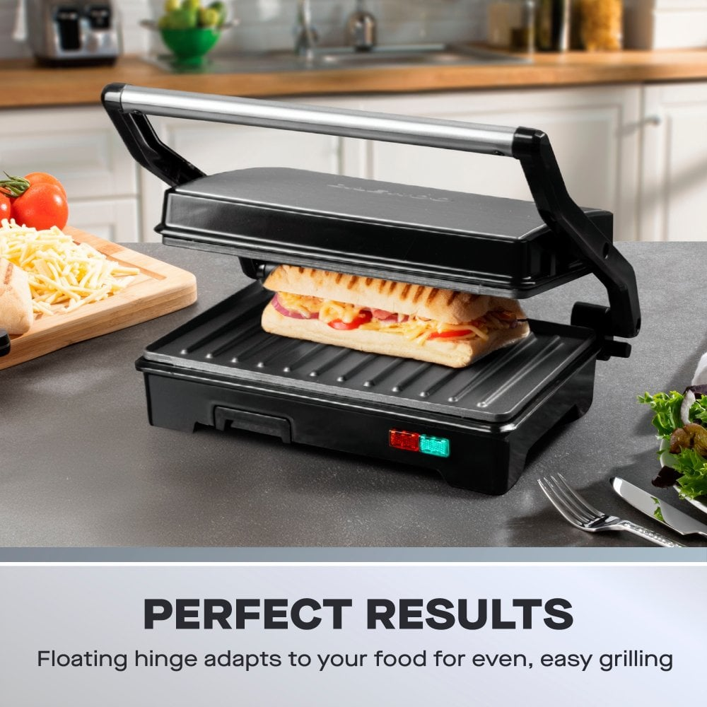 press paninis or open flat to grill meat/fish & veg