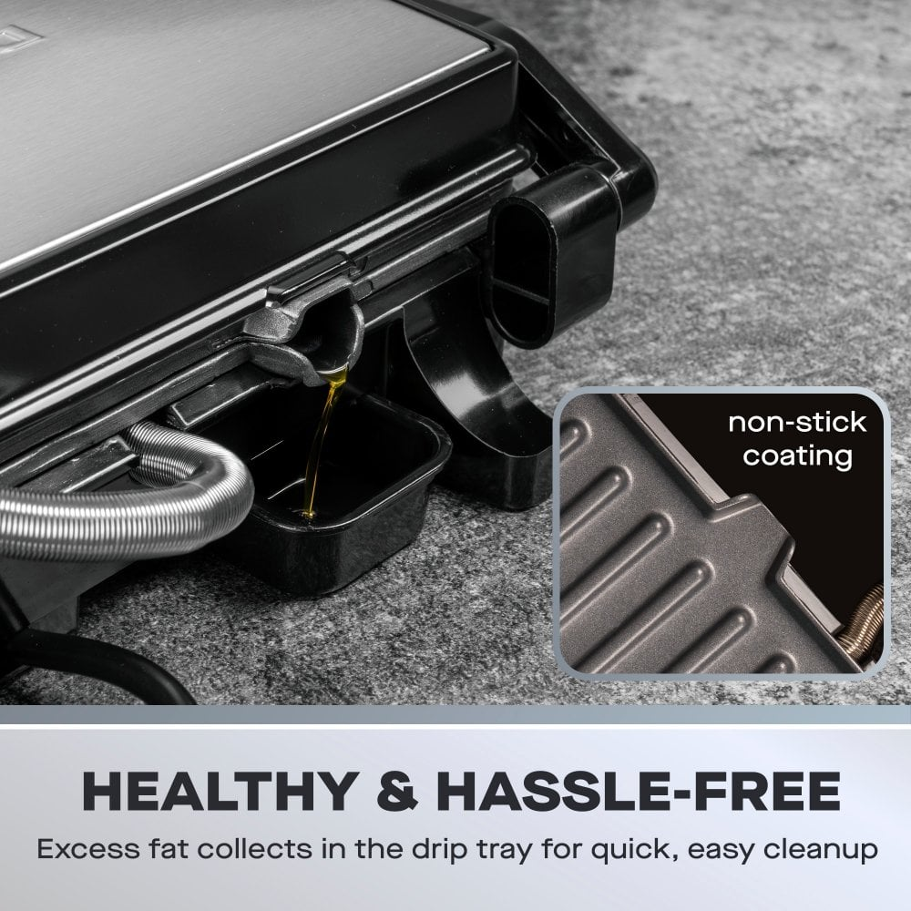Equipped with marble-coated non-stick plates, this mini panini press guarantees hassle-free cooking and effortless cleaning. Whether you're preparing grilled sandwiches, meats, or vegetables, you will appreciate the easy-to-clean surfaces once you have finished. The versatility of this appliance means you can open it to 90 or 180 degrees, allowing you to grill larger items or enjoy traditional sandwich making with ease. Safety is a top priority, which is why our mini panini press includes skid-resistant feet that keep the unit stable during use. The built-in light indicators offer convenience by signaling when the power is on and when the plates have reached the optimal cooking temperature.