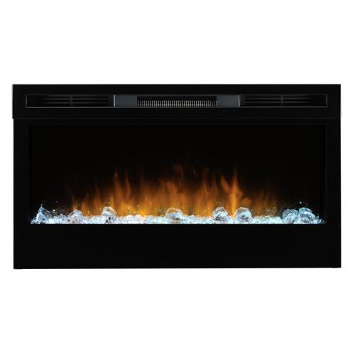 This 34″ wide version Prism linear electric fireplaces make a sparkling addition to your wall. Its flames arise from a bed of diamond-like decoration which can be illuminated in many colors, to suit your mood. With its remote control and a powerful and efficient fan-forced heater, this fireplace adds comfort and ambiance to any space. Plugged in or hard-wired, hung on the wall or built-in