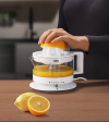 Easily adjust the amount of fruit pulp by turning the jug within the pulp scale. Alternating rotation of the juicer cone decreases the strain of squeezing and increases the amount of juice extracted. Easy handling by simply pressing down the fruit to start and lifting it off to stop. Handy jug measurements for precise dosage for any recipe. Easy and time saving, can be disassembled with a few quick steps before putting it into the dishwasher.