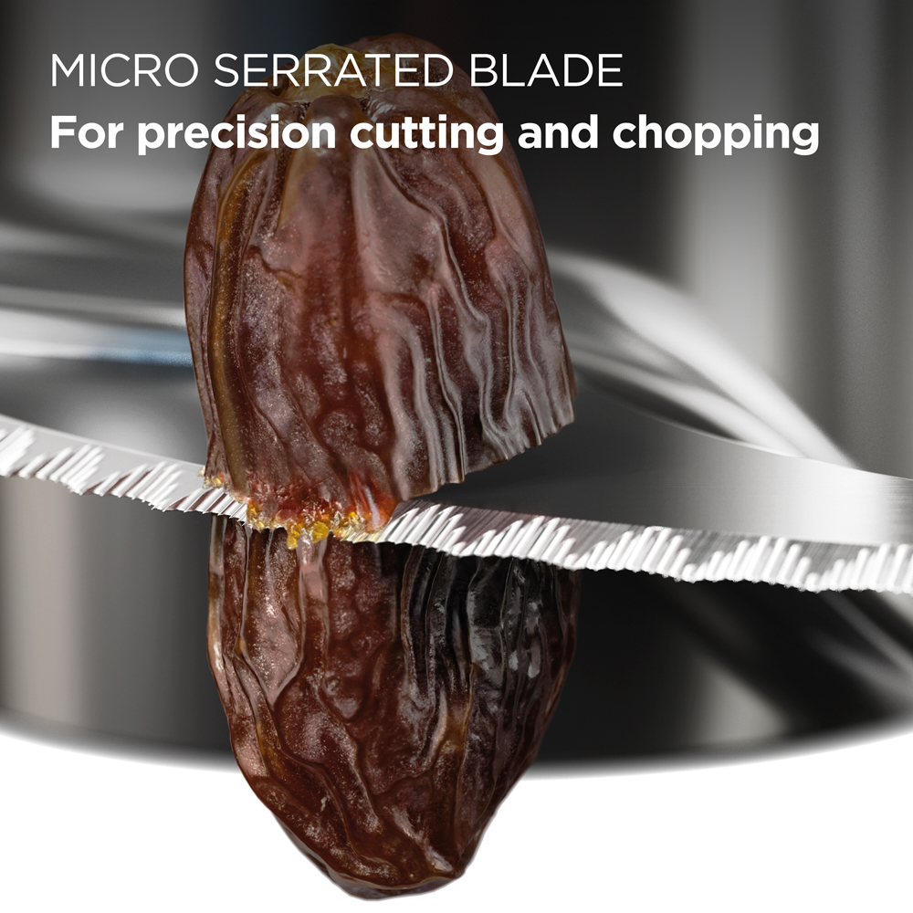 Fine cut,coarse chop or puree. Achieve just the right texture with our unique cutting system and micro-serrated blades. Staying sharp and strong,our blades stand the test of time.