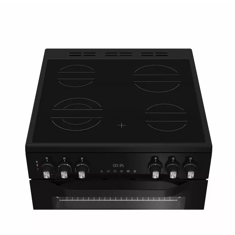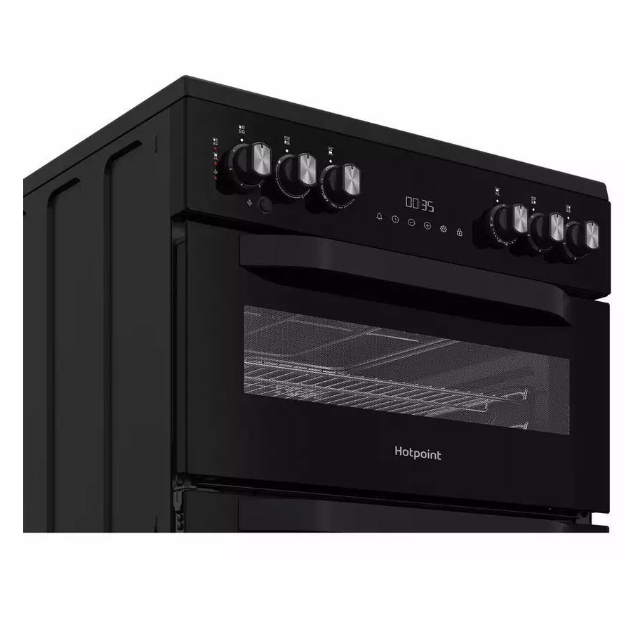 This Hotpoint 60cm freestanding cooker in sleek black combines style and technology. The large main oven with Multiflow, SteamAssist, and Air Fry delivers perfectly cooked, crispy meals with minimal oil. Catalytic liners make cleaning easy, while the top oven adds flexibility. The fast-heating ceramic hob adjusts for large or small pans. With an oven light, timer, and A energy rating, it's perfect for effortless, efficient cooking.