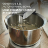 The generous 3.5L bowl can handle significant quantities,such as whisking up 500ml of cream or batter mixture for up to 24 cupcakes.