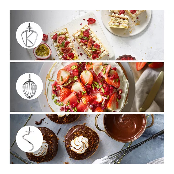 Our signature K-Beater accompanies two more aluminium baking tools – a dough tool and whisk. They’re all tried,tested and easy to wash by hand.