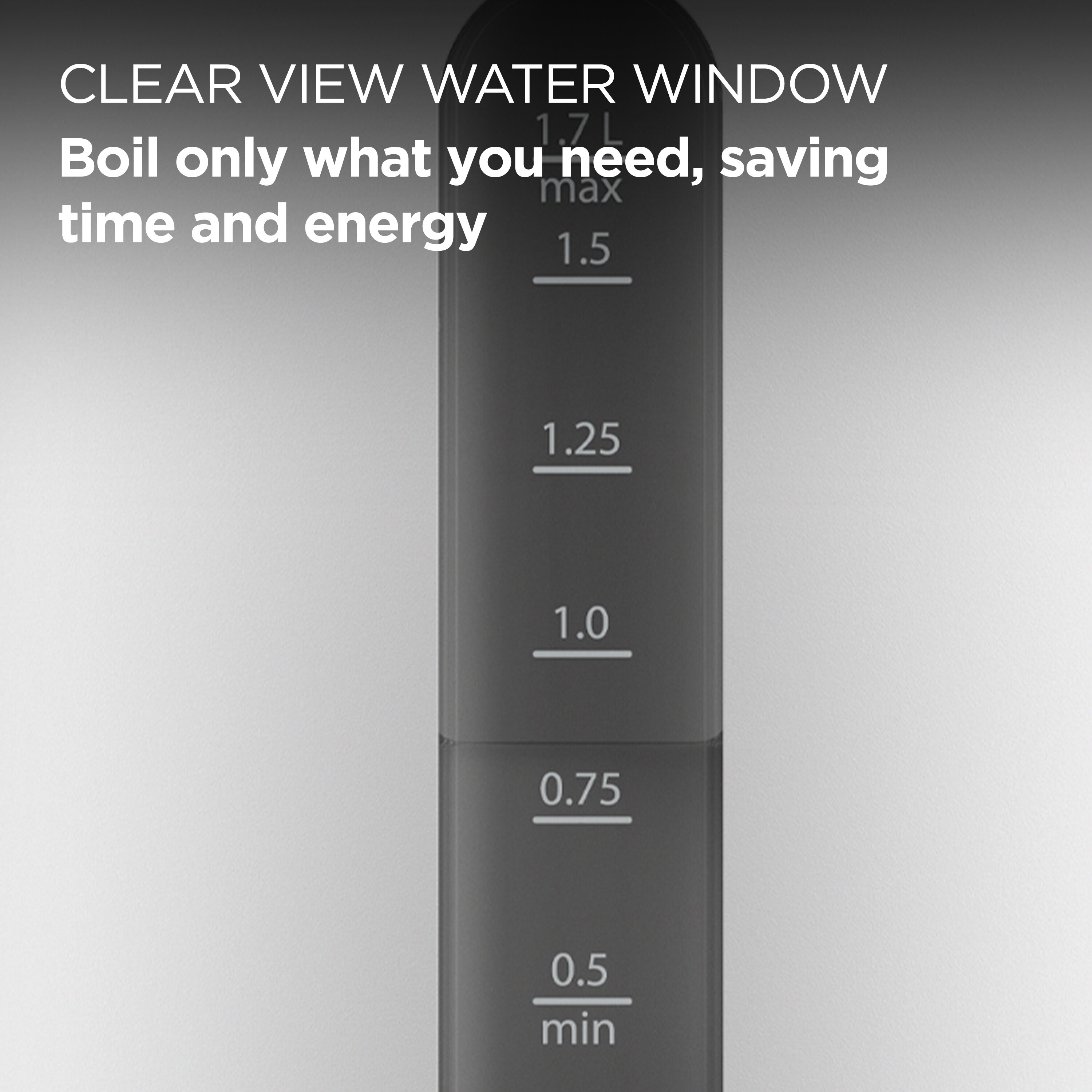 A large 1.7L capacity means enough water to make a round of hot drinks for everyone,but when it's just the morning coffee for one,the easy view water window means that you will never overfill - saving time,energy and water.