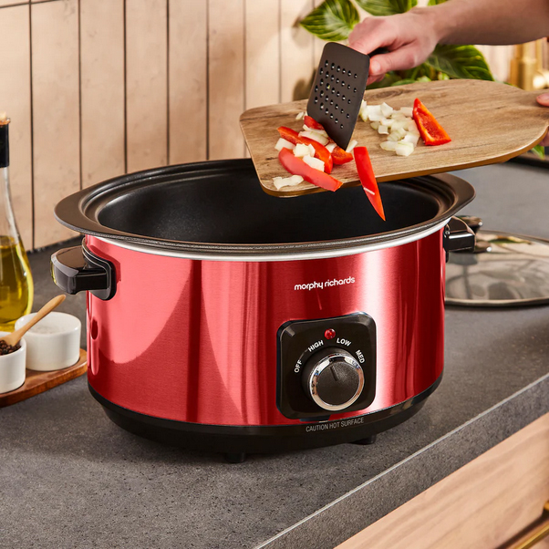 For complex casseroles, spicy curries and even large joints of meat, our Morphy Richards Brushed Stainless Steel 6.5L Slow Cooker makes mealtimes a piece of cake. This must-have slow cooker, also known as a crockpot, is designed with 3 heat settings, a toughened glass lid and single dishwasher-proof cooking pot making this slow cooker the perfect choice for whipping up hearty, nutritious meals for the whole family while keeping clear-up to a minimum.