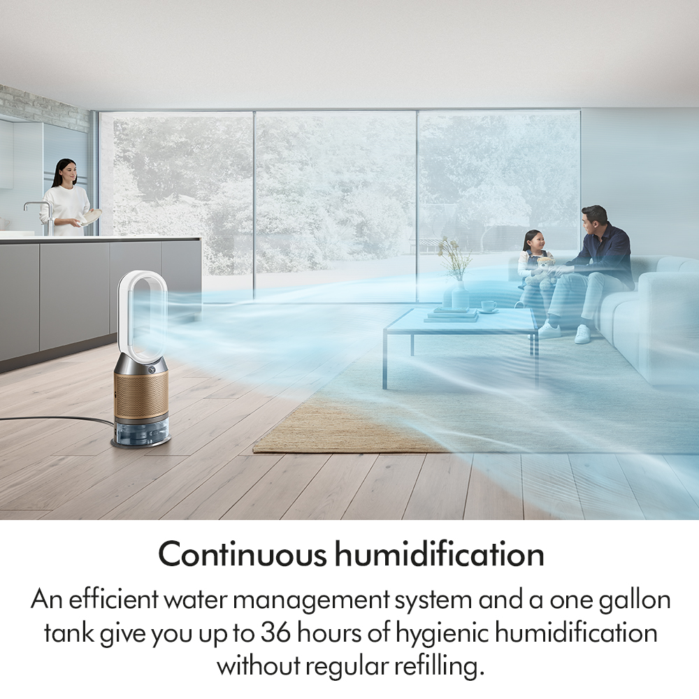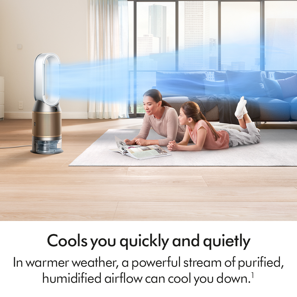 Hygienically humidifies the air and cools you1. Removes dust, odours, and allergens – for a healthier home environment.