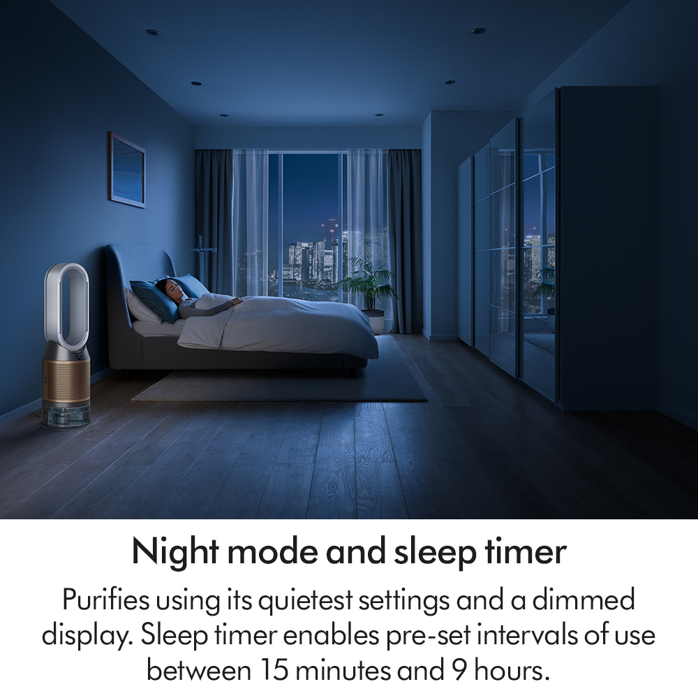Night mode for lights sleepers. Monitors, purifies, humidifies and cools you using the quietest settings, along with a dimmed display.
