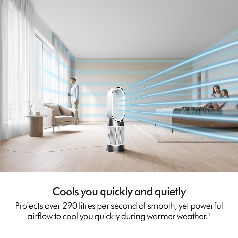 Air MultiplierTM technology projects over 290 litres of air per second delivering smooth, yet powerful airflow to cool you during warmer weather.