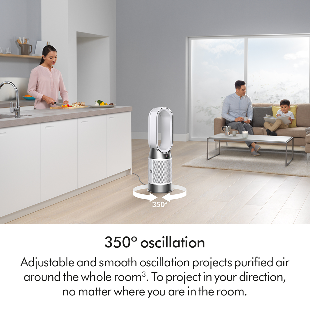 350° oscillation to project purified air around your whole room.3