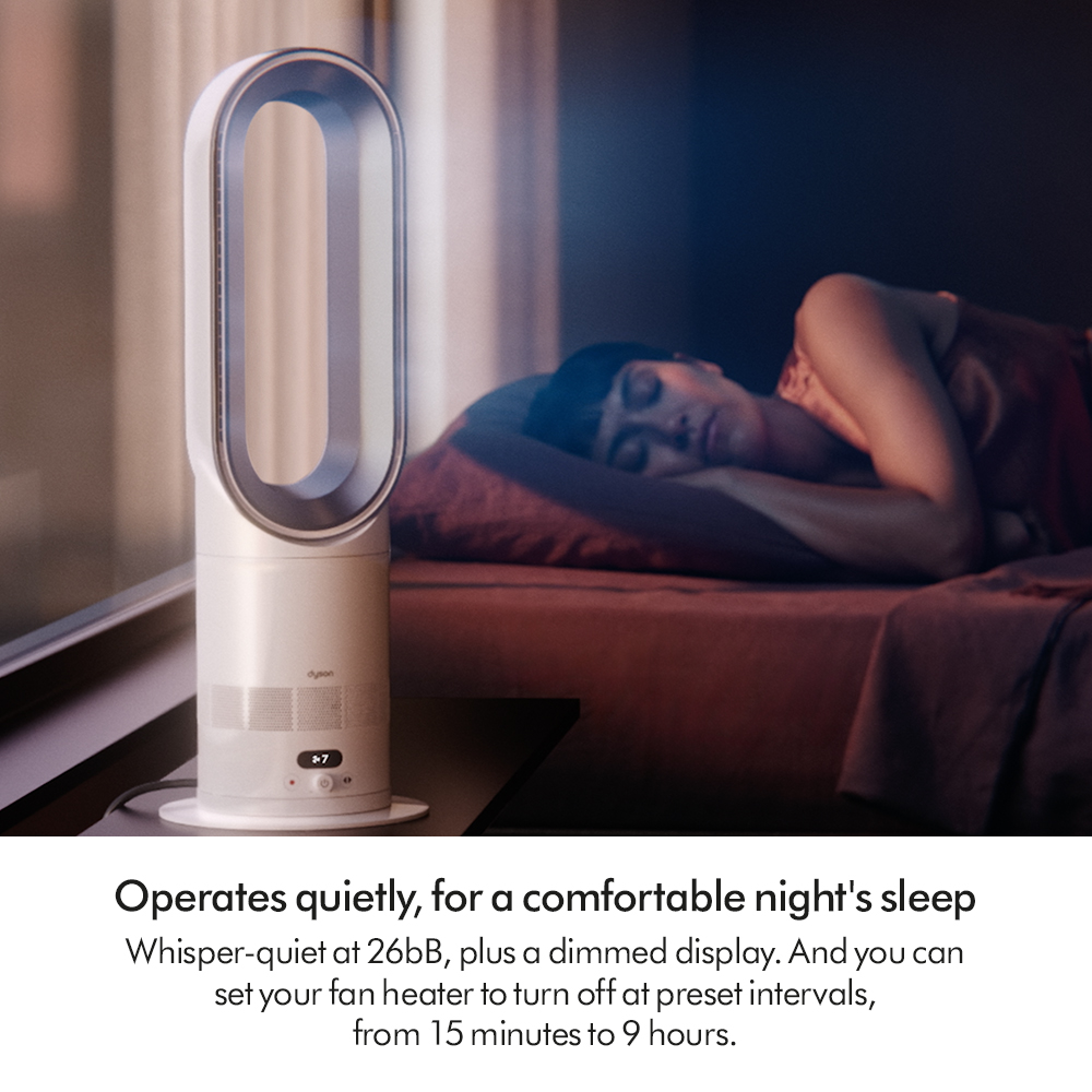 Whisper-quiet at 26bB, plus a dimmed display. And you can set your fan heater to turn off at preset intervals, from 15 minutes to 9 hours.