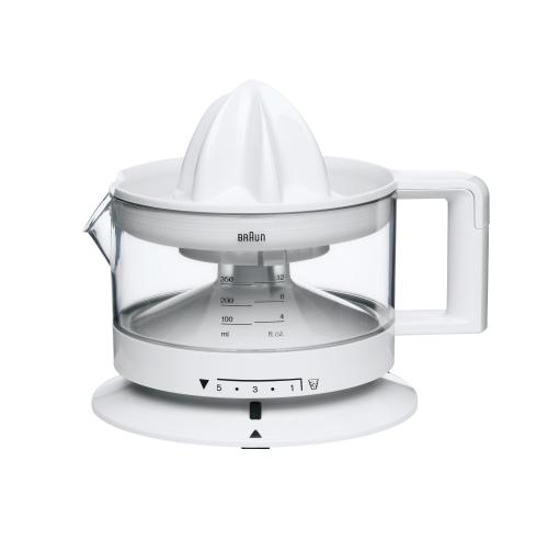 Easily adjust the amount of fruit pulp by turning the jug within the pulp scale. Alternating rotation of the juicer cone decreases the strain of squeezing and increases the amount of juice extracted. Easy handling by simply pressing down the fruit to start and lifting it off to stop. Handy jug measurements for precise dosage for any recipe. Easy and time saving, can be disassembled with a few quick steps before putting it into the dishwasher.